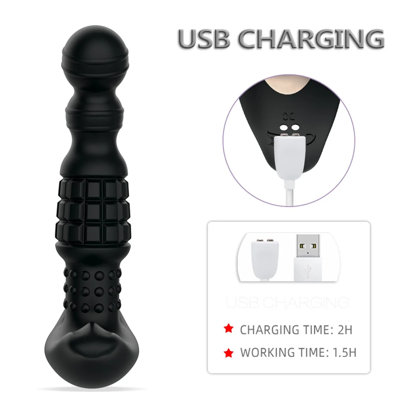 El dispositivo es recargable mediante un práctico sistema USB magnético, asegurando que siempre esté listo cuando lo necesites. Su control remoto facilita el manejo de todas sus funciones sin interrupciones, permitiéndote disfrutar del placer sin distracciones.