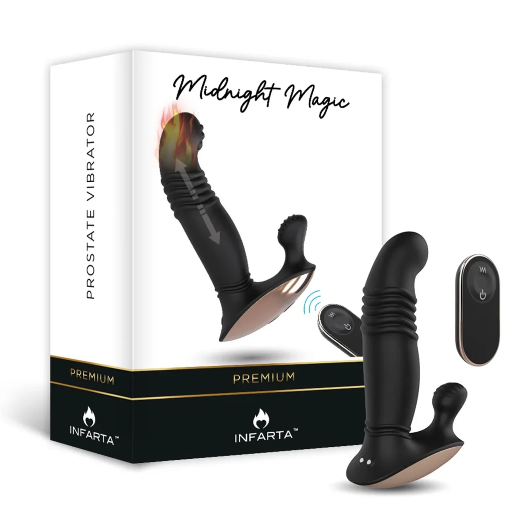 Atrévete a explorar nuevas dimensiones de placer con el vibrador de próstata Midnight Magic de Infarta. Diseñado para aquellos que buscan experiencias más allá de lo convencional, este sofisticado juguete combina tecnología avanzada con un diseño ergonómico que se adapta perfectamente a tus deseos.